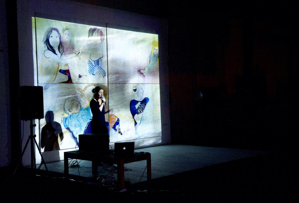 Med billedkunstner, lydkunstner og kurator Vivi Christensens maleriinstallation, der udstilles i den gamle skibssmedje, inviteres publikum helt ind i familiens hjerte. På fire store malerier, holdt i vandige, næsten gennemsigtige farver, skildrer Vivi Christensen scener fra familielivet. Det er børnene som sover på bagsædet af bilen, leger på stuegulvet og ligger i sofaen og ser fjernsyn. Fanget, som var der tale om et fotografi, et hurtigt glimt fra hverdagsland. Hen over malerierne projekteres vidoeoptagelser fra kunstnerens hjem. Dagligdags detaljer som en spyflue, der kravler på en vindueskarm, et gardin der blafrer i vinden. Når lyset tændes træder kunstneren frem foran maleri og videoprojektion for med sprød og spinkel stemme at fremføre to sange. Den ene om hendes barndom, den anden en sang til hendes mand.